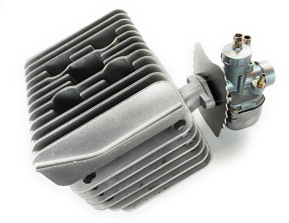 Dabei schirmt es zum einen den Vergaser von der Wärmestrahlung des Motors ab und verringert gleichzeitig die Wärmeeinleitung vom Ansaugsutzen durch das zusätzliche im Fahrtwind befindliche Aluminium.